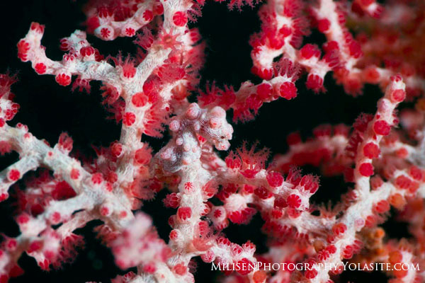 Pygmy seahorses are well-camouflaged on their host sea fans.