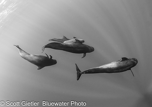 Many ambient light photos look great in black and white, so try converting your shots to see how they look. These Pilot whales from Kona, Hawaii looks great in black & white.