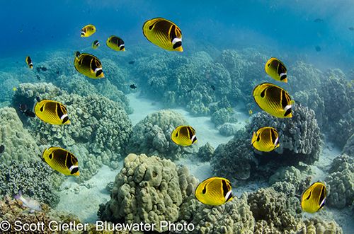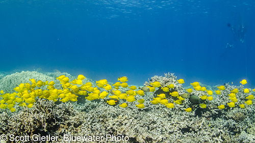 For great colors throughout the photo, shoot a reef that is equidistant to the camera. This is the best way to avoid the color from being absorbed by the water as distance increases.