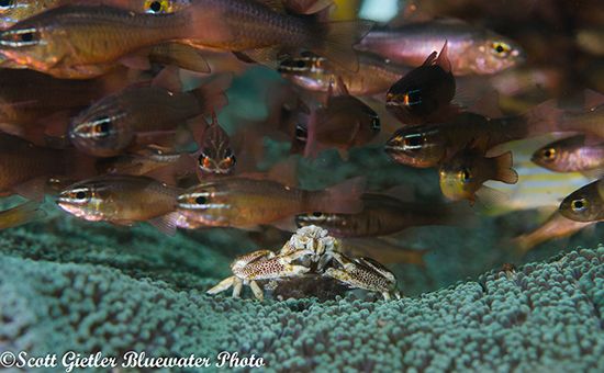 Crab and Cardinalfish. Nikon D7000, Nikkor 105mm Lens, Sea & Sea Housing, 2x strobes.