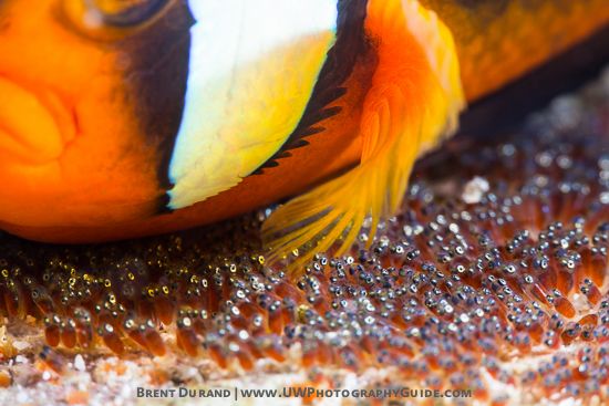 Clownfish oxygenating eggs. Canon 5D Mark3, Canon 100mm Lens, SubSee +10, Aquatica Housing, 2x strobes.