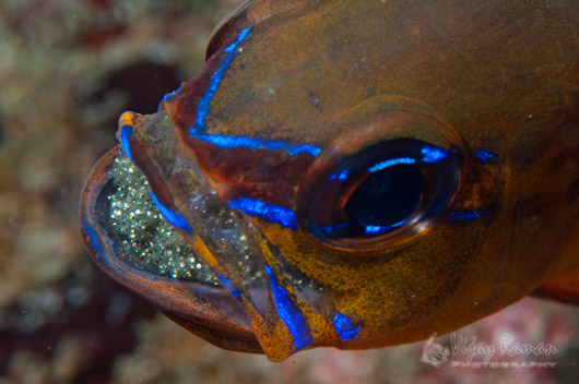Underwater photography of mouthbrooding Cardinalfish can be challenging and rewarding. On a recent visit to the Sabang Wrecks in Puerto Galera, Philippines, we found that a little patience can reward you with some interesting images of this unique marine life behavior.