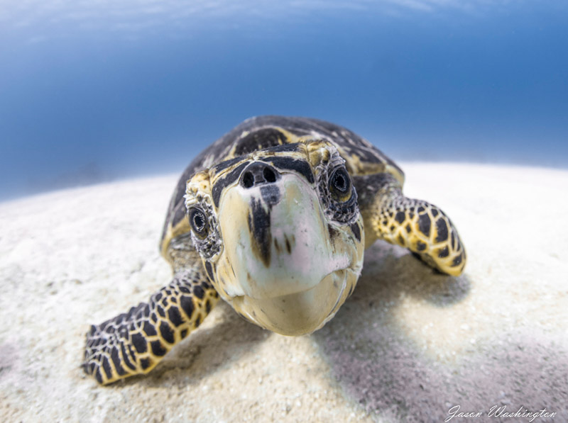 I might also add, if you want to use artificial light in conjunction with ambient light, the process is basically the same. The one thing to keep in mind here when using artificial light is the distance to the subject. For example, if you plan on shooting a turtle with this mix of light, decide when you balance the camera how far you intend to be from the subject. If the turtle will likely be 3 feet from the camera, balance the camera with the white card three feet from the lens. You might find this process easier if you have your buddy hold the card. Other options are, find an area where the sand is nice and white and exposed to the sun. Fire your strobes here with your chosen distance and voila! Now you have a mixed-light, custom white balance. Some equipment manufacturers make white fins. These are great for balancing your camera without the help of a buddy. Mixed light with custom white balance can be a little tricky – always remember that if you move too close to your subject it will become overly warm. If you’re in a pinch and the turtle swims too close simply move back or turn down the power on your strobe. You can apply this same technique with video lights.