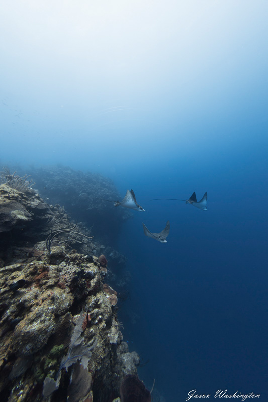 Surrounded by two thousand meters of crystal-clear cobalt blue water, the Cayman Islands (pronounced “K-Man” for those of you who want to fit in with us locals) are home to some of the best visibility found anywhere on planet earth. These three small islands aren’t home to the usual environmental factors impacting water clarity found in other popular diving destinations. The lack of rivers, lack of neighbors, and a deep bottom where all the suspended particles can sink out of sight are all reasons that make ambient light photography a great choice when diving Cayman.