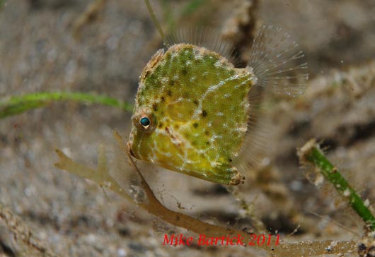 Diamond Filefish blends in with the seagrass and Halimeda algae