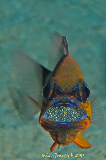 Some of my favorite finds from my recent trips have to be the egg carriers and brooding Cardinalfish. Patience prevails when stalking your subject. Longer lenses can prove helpful but you must provide with more light and higher f-stops to increase the color.