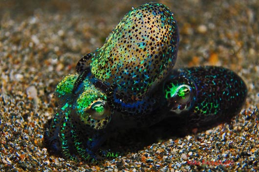 Mating Bobtail Squid or Dumpling Squid.