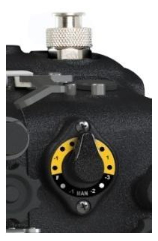 A control extender armfor the ISO button is now a standard feature on the Aquatica A5DMk IV Pro Housing. ISO is an important, and in our opinion a vital feature, especially when shooting video, in normal circumstances this can be done by pushing on the ISO button located on the right hand top of the housing. This lever gives a quick and comfortable access to the ISO control of the camera.