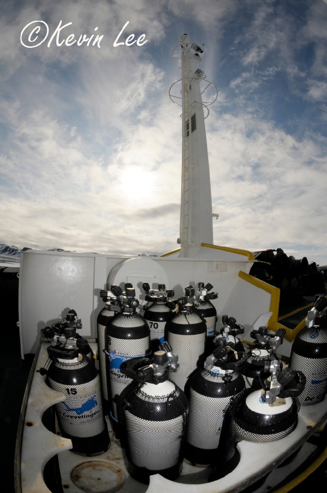 We boarded the modernized MV Plancius, operated by Oceanwide Expeditions, along with a hundred other passengers for one week of exploration among the many Svalbard islands.  Fifteen of us paid extra to scuba dive.  Unlike the 20-foot swells we experienced crossing the Drake Passage, from the tip of Argentina to the Antarctic Peninsula, our Arctic foray was like plying the waters of a placid lake.