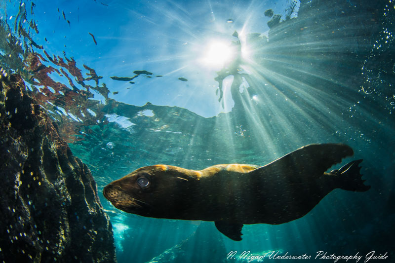 La Paz is one of the best spots in the world for playing with Sea Lions. One colony in particular, the Los Islotes colony, is renowned for sea lions with a gregarious, sociable dispositions. Los Islotes is a small, rugged island an hour’s boat ride from La Paz. The water is crystal clear with large schools of sardines and other fish swirling among jagged rocks below steep reliefs. Sea Lions chase fish with effortless precision and swim right up to any being they deem interesting. The trick to sea lion photography is to stay shallow (almost at the surface) and play with sea lions when they play with you! Sea lions will often mimic you movements while summersaulting through the water column, playing tug of war, and blowing bubbles. During our last workshop, our guests were so enthralled with these interactions, that we went back three times!