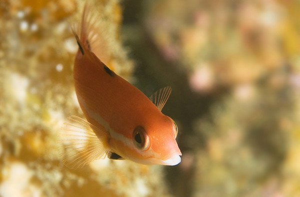 Baby sheephead at Catalina Island. F8, 1/250th, ISO 200. Fish portraits can be hard work, It took me dozens of dives to get this portrait, skittish fish usually are turning away or not at the right angle. I still wish I had a better background.