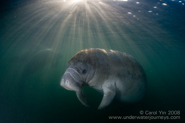 Canon 5D, Sigma 15mm FE, 1/200 at f4.5, ISO 160. Photo by Carol Yin. Carol says "The sun rays in this image were so dramatic because we were so close to the surface, and the water was so murky that morning".
