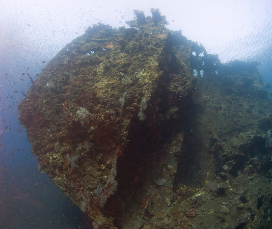 Liberty wreck, Bali. This is a huge wreck, but there is no sense of scale. You can tell it’s in shallow water from the colors on the wreck.