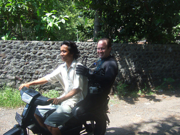 How do you get to your favorite dive destinations? Your editor on the way to a dive site – the “Drop Off”, camera on the lap.