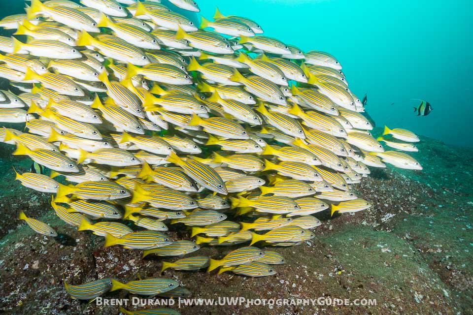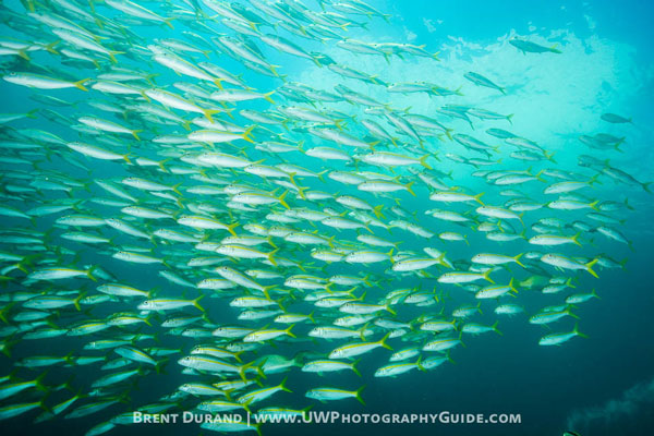 A school of jacks blasts by us near Chileno Bay, during a Corridor dive.