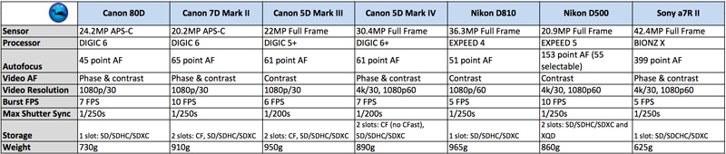 Yes, the Nikon D810 and Sony a7R II may have better technical sensor specs, but I highly advise you to look at images and video shot with all cameras instead of just this raw data. After all, we want to share the final product – not sensor data reports!