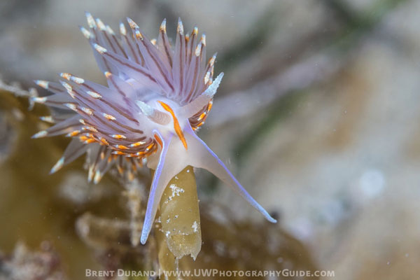 This hermissenda nudibranch stands out even without the use of a black background. Shot with Canon 7D Mark II and Canon 100mm macro lens.