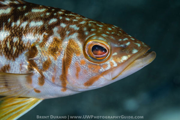 Beautiful color and sharp detail in a kelp bass. Shot with Canon 7D Mark II and Canon 100mm macro lens.