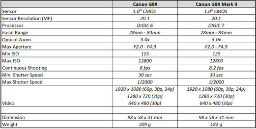 Comparison Between Canon G9X and Canon G7X Mark II: