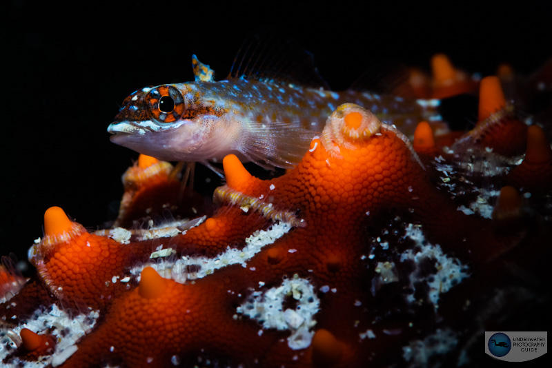 But perhaps the most revolutionary aspect of the R5’s autofocus is the animal eye autofocus tracking system engages and takes over when it senses a fish eye. When I shoot macro and photograph fish like blennies and gobies, I’ve found that the animal eye autofocus tracking engages about 80% of the time! That’s incredible. Not even the Sony A1 can do that. Take this signal blenny for instance. It was jumping around and the R5’s eye autofocus tracking system stayed locked onto its eye the whole time…