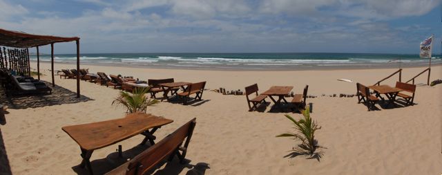 The highways, however, were in good repair all the way to Imhambane (courtesy of Chinese investment in exchange for commercial fishing rights). Though we couldn’t see the coastline for much of the drive, gorgeous white sand beaches and dunes hug the shoreline for hundreds of miles.  Mozambique may be the most beach-rich country in the world. From Inhambane it takes about 30 minutes to reach Tofo, and we arrived just after dark with no reservations. We decided to check out the “backpackers” lodge and checked in to the only remaining room at Bamboozi Beach Lodge. The parent company, Barra Resorts, owns a few different levels of accommodation in the area and Bamboozi is at the bottom. We were given a bamboo “chalet,” which was quite spacious with two single beds.