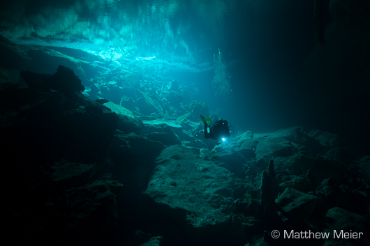 Scuba diver in the main cavern of Ben’s Cave.