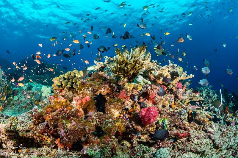 We dropped in and did not have much current, which meant we had to do a fair amount of swimming in the blue. We were soon rewarded though, with a deep reef covered in fish.