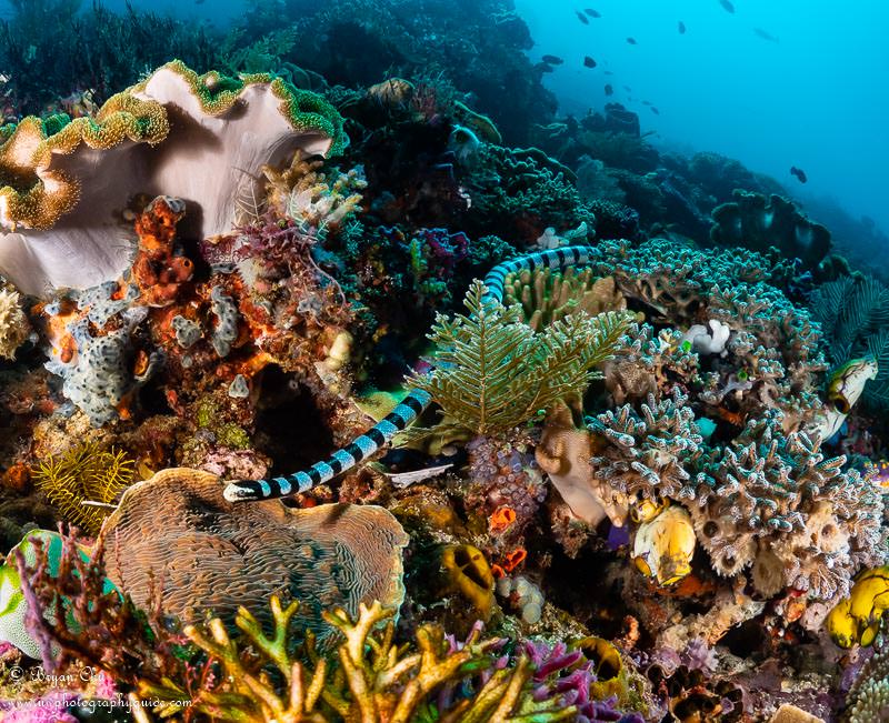 Along with the myriad of fish, we also had a couple of sea snake sightings. This was my first real sea snake encounter, and it was very difficult because this snake wasn’t stopping or slowing down for anything (not even a diver with a big camera rig stuck right in its path).