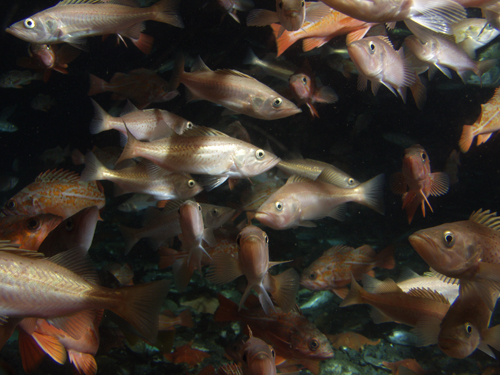 You were surveying California oil rigs and platforms (via manned submersible) on a 16 year survey finishing in 2011. What fishes do you generally see on the rigs? Well, we didn’t dive the shallowest ones. There are a couple that are in 50 feet of water off Huntington Beach, but if you look at all the rest, the majority of the fish are rockfish of various sorts. In the shallower waters, like at Catalina, there’s garibaldi, sheephead, kelp bass, opaleye and fish like that, but once you get deeper than about 60-80 feet it’s mostly rockfishes. There are 25 or 30 rockfish species, but you’ll also find lingcod and other fish.