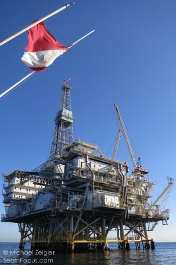 Oil rig Eureka, located a few miles off the coast of Huntington Beach, CA. Photo: Michael Zeigler