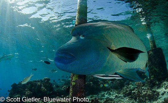 Napolean Wrasse in Fakarava. There were several Napoleans that hung out near our resort.