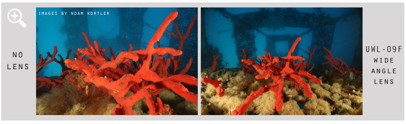 The UWL-09F wet wide angle lens provides an exceptionally wide field of view and a zero minimal focus distance, which allows capturing breathtaking wide angle and close-focus images that are super sharp corner-to-corner and great on the details. It is perfect for a wide variety of compositions, including seascape, divers, ship wrecks and schools of fish, without moving further away from the subject, thereby still taking full advantage of water clarity and artificial light sources.