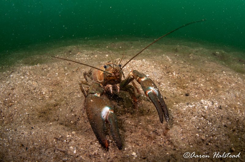 Photography in these conditions can be challenging. With frigid 38-40F temps, time in the water is limited. Extremely silty bottoms with no water movement leave little room erratic fin kicks, and bulky drysuit and thick gloves limit mobility and dexterity, making simple changes to camera settings difficult. When shooting the Tokina 10-17, a mini dome was essential to getting up close to these crayfish, and due to the dark, murky water, a focus light such as the Kraken Hydra 1k was crucial as well.