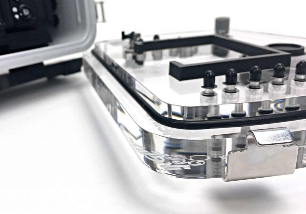 O-ring channels trap dirt and debris, and cause the o-ring to twist and deform in various ways. Our unique groove-less design is the most user friendly and reliable sealing method currently available. For added assurance, the all-clear back allows you to see the o-ring form a solid, black line once the housing is sealed.