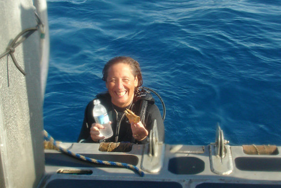 Rene is such a dedicated reef cleanup diver that she didn't even come out of the water for lunch.