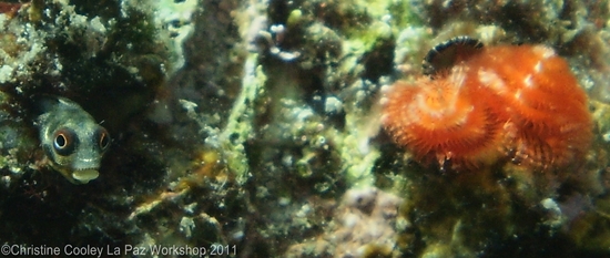 Blenny and Christmas tree worm.  Honorable Mention – photo by Christine Cooley.