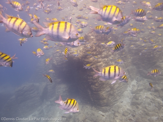 The 2011 La Paz workshop was awesome. We were greeted everyday with fantastic weather, and awesome diving conditions.  Thirty divers boarded two boats each day for some of the best easily-accessible wide-angle diving in the world.  Our primary subjects were whale sharks, sea lions, mobula rays, and baitballs. No one was disappointed in the diving or photo ops!