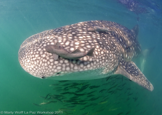 Whale shark and remoras. 2nd place – photo by Marty Wolff.