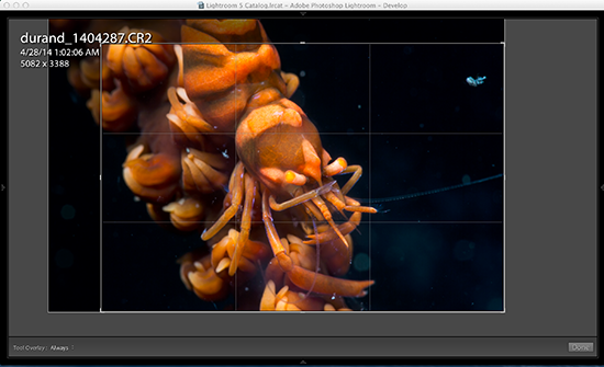 Cropping is quick and easy in Lightroom’s Develop module. Each photo should be cropped if needed to achieve the optimal composition.