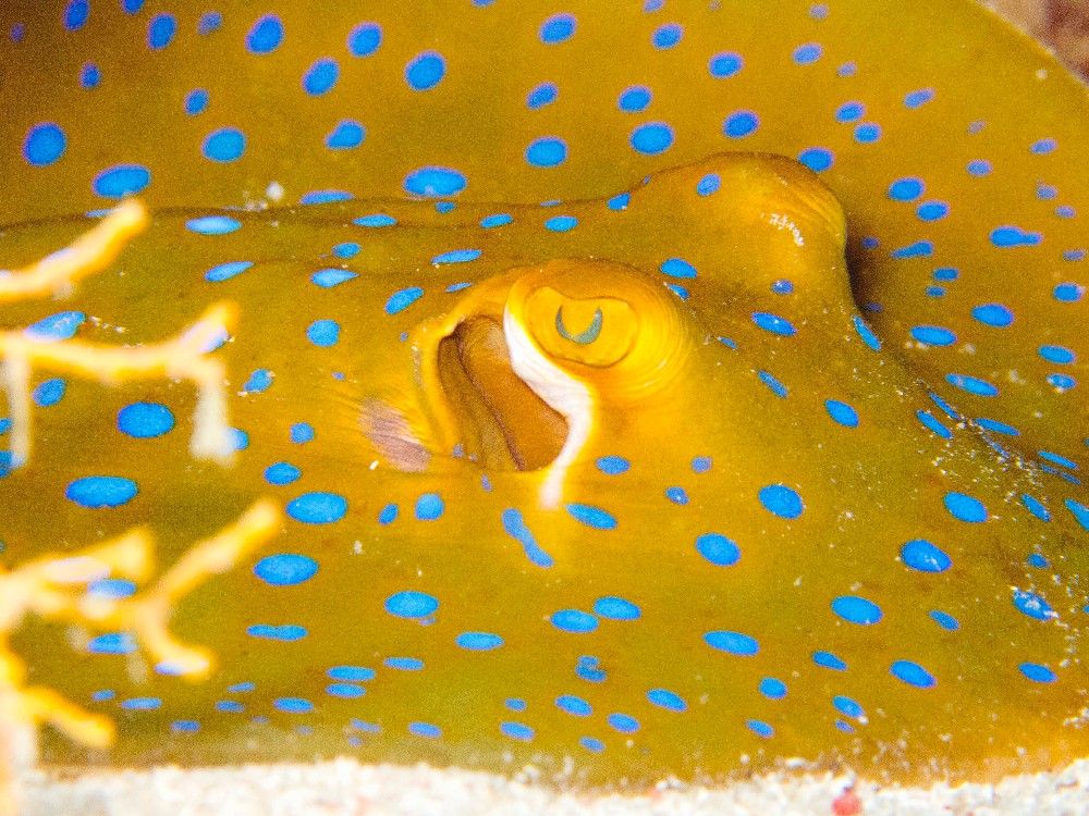 Blue spotted stingray. Shot with camera flash on. Av mode at f5.6 at ISO400. 1/60s.