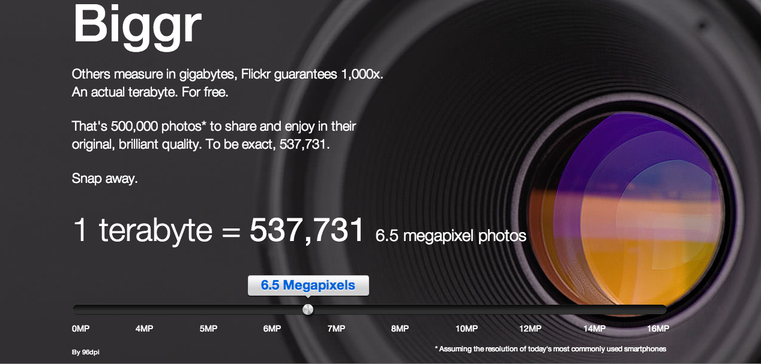 If there's one thing photographers can always use more of, it's storage space for your images and a place to share them with the world. Flickr, one of the earliest social media sites (based around photography) received a major upgrade today. Included in the "spectacular" redesign is a new look that puts a focus on the images themselves. More importantly, free storage space has increased from 300mb a month to a flat 1 terabyte of storage space.  It's hard to argue against 1000 gigs of free space and the ability to share all those images with a community of other photographers.