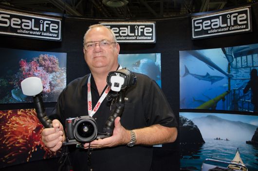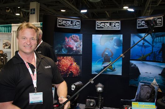 Karl Schuster at SeaLife shows off the super cool AquaPod (SL913). This compact accessory extends from 18" to 53" and fits all cameras with a standard tripod mount. It also includes an adapter for GoPro cameras! http://www.sealife-cameras.com
