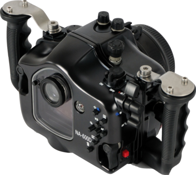 NA-600D housing is the smallest SLR housing in the Nauticam lineup, which should appeal to anyone concerned with the large size of some SLR housings. This housing can still accommodate the same accessories as all other Nauticam housings, allowing use of an extensive line of lenses, ports, port adapters, lens gears, and viewfinders.