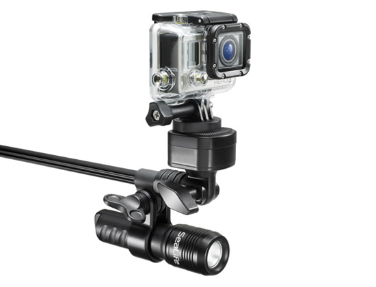 The Sea Dragon Mini 600 is an even smaller and slimmer light, providing 600 lumens of brightness. This versatile dive light can be hand held, mounted on top of a camera’s cold shoe, mounted to a GoPro® camera, or mounted to the SeaLife AquaPod, a 53” (132 cm) extendable monopod that can get a camera and light close to a shy or aggressive sea creature or reach into wrecks and crevices. The Sea Dragon Mini 600 has a burn time of 60 minutes with the included CR123 batteries or 100 minutes with an optional rechargeable Tenergy® Li-ion battery. It is supplied with a variety of adapters to cameras and other devices and will be a favorite for users of small cameras like the GoPro® for which a mount is also included.