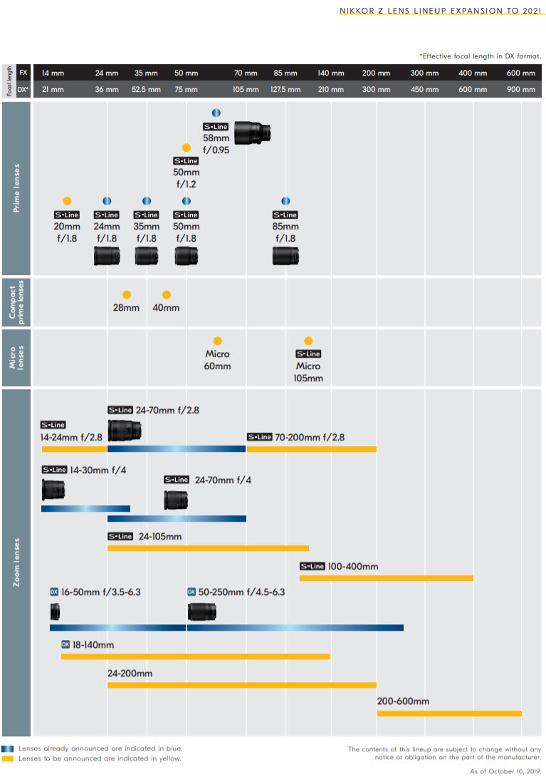 As this is a new lens system, Nikon only has a few Z mount lenses available. However, they have released their lens lineup until 2021, which is quite informative.