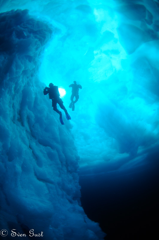 You never know in advance about the dive site; every season, the ice creates new shapes, structures, opportunities and challenges. Often you can really play with the light falling through the ice. Also you should be prepared to see amazing macro life, including small shrimp living on the ice, magic comb jellies and the sea angel, a swimming nudibranch.