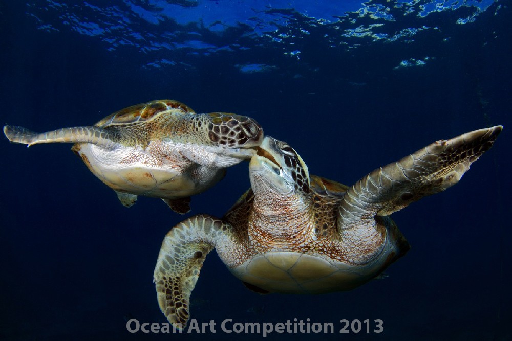 Green sea turtles interact, Tenerife (Canary Islands)