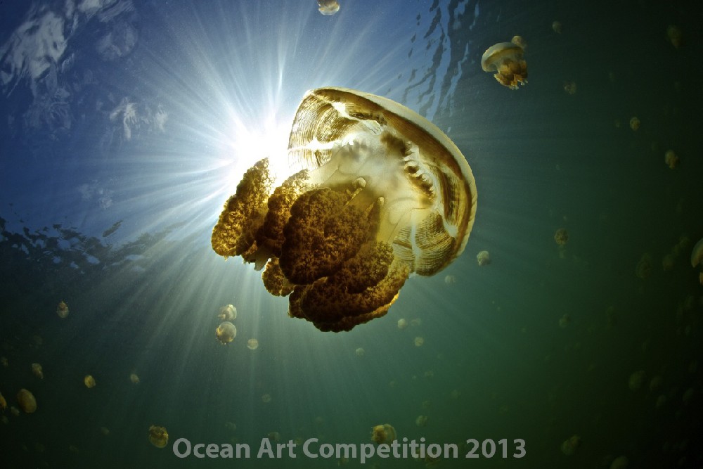 Jellyfish and sunburst in Jellyfish Lake, Palau