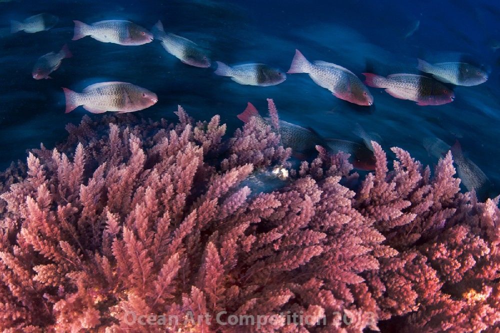 Parrotfish over pink algae at Socorro Island