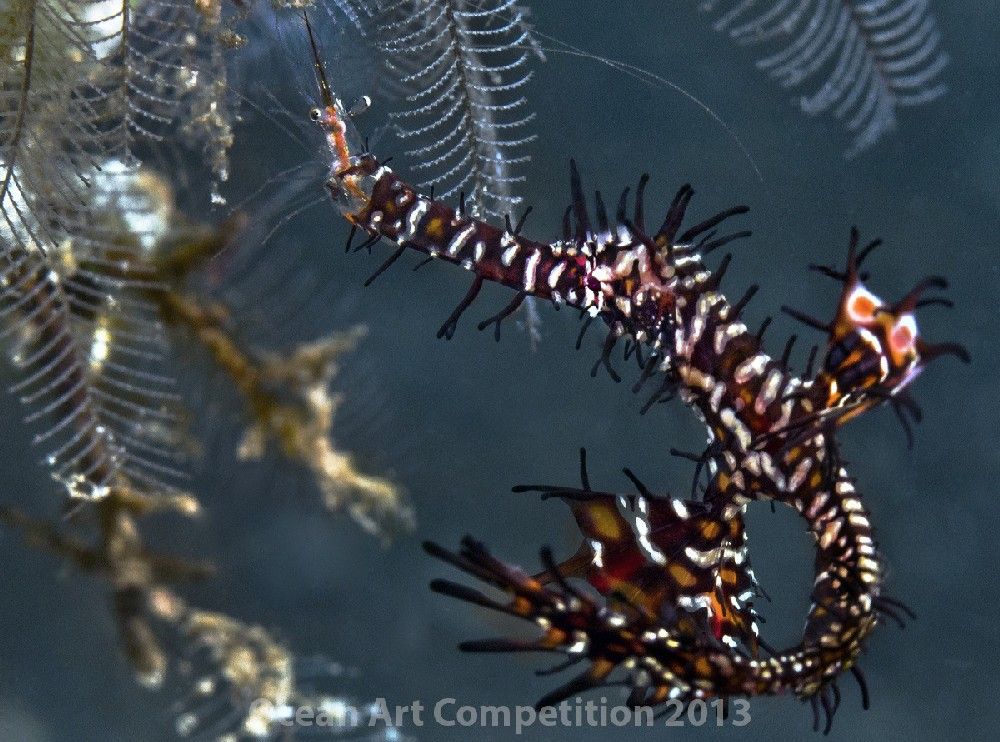 I was zoomed at least halfway using a SubSee +5 (I have a dual gate SubSee but I'm sure the +5 was in place). It was shot in Lembeh Strait, Indonesia. I got a series of 4 shots on this pipefish, this was the only one showing the catch (the 1st shot he hadn't gotten his meal yet, the others were "too late"!). You can guess, given the shutter delays in point and shoot cameras, it was fortunate I got the peak action but part of that was having the shutter release half-way down, being prepared in case!
